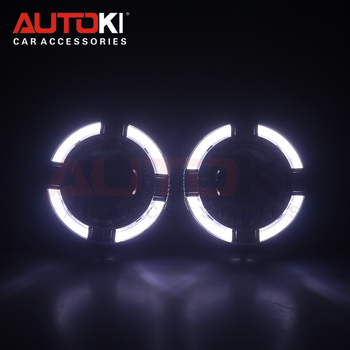 Autoki 스퀘어 더블 LED 라이트 가이드 천사 눈 프로젝터 렌즈 2.5 인치 오토바이 및 자동